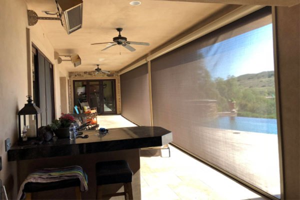 Our superior zipper-track system keeps fabric taught, wind resistant, and bug proof. PowerShades are constructed of die-cast powder-coated extruded aluminum components, and are designed to withstand extreme wind and weather conditions. From a screened-in porch, a garage door, to an oversized bi-fold door, PowerScreens are the perfect solution.